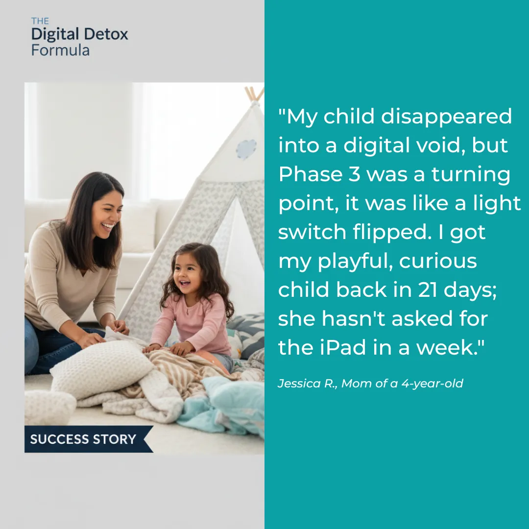 While other parents struggle with escalating screen battles, you'll be reconnecting with your child using our proven system.